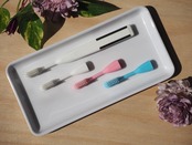 ナイロン毛の替えブラシ・ブルー、ホワイト、ピンクの3本入。